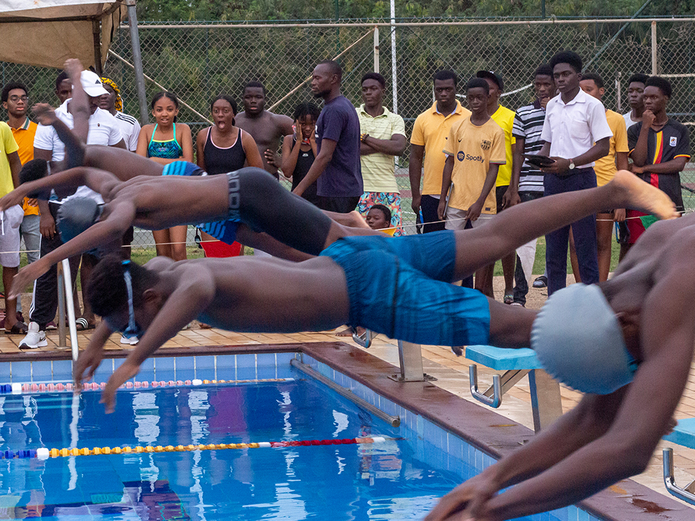 Dive in and unleash greatness’—— The invigorating aura of the swimming pool over the hubbub of buzzing participants and the gentle sound of soft splashes of students taking turns diving into the water kicked off the annual swimming competition. With massive support from students, hostel tutors, and staff, the various hostel groups and swimming teams, in unity, did their very best in the competition. The top swimmers of all four hostel groupings retreated into the changing rooms to prepare for their share in bringing their team's glory. Swimmers dove into the inviting water and speedily made their way through the length